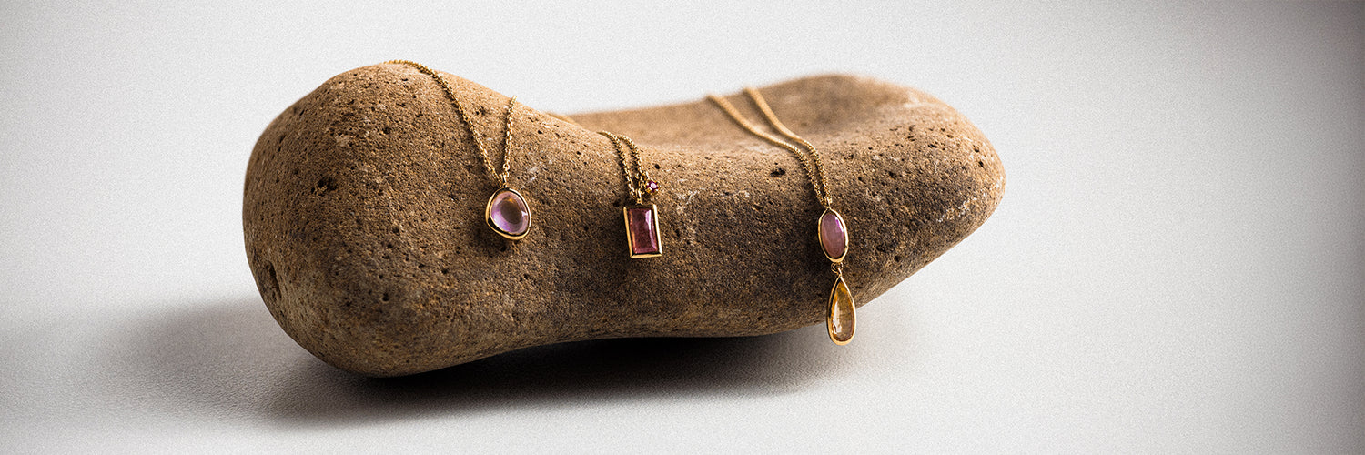 Silberanhänger "double wave" mit Pink Topas