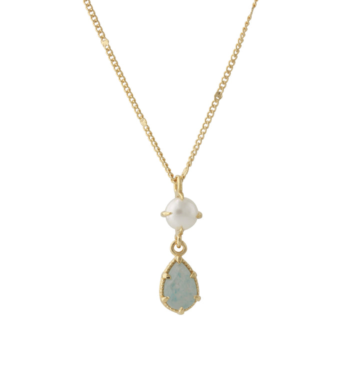 Silbercollier 18ct vergoldet mit 4x6mm Blauquartz & 4mm SWZ-Perle, Kette 40+5 cm